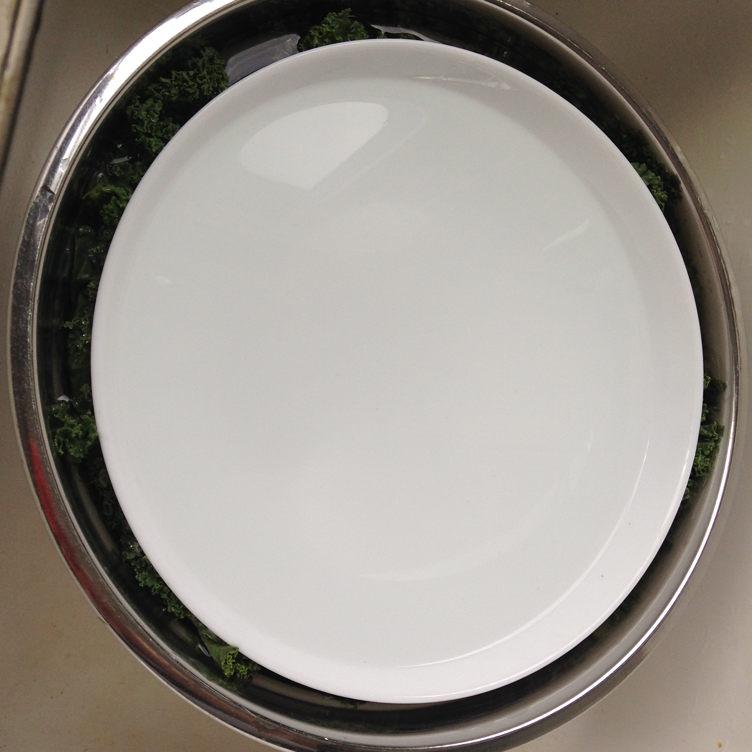 She cut those wilted bunches of kale into pieces and dumped it all in a bowl. She gave it that comforting, gentle hug of warm water. It’s alive! The pores on those kale pieces are opening up to the world again and the crunch is coming back. She drains it and then ruthlessly gives it a soak of extremely cold water.