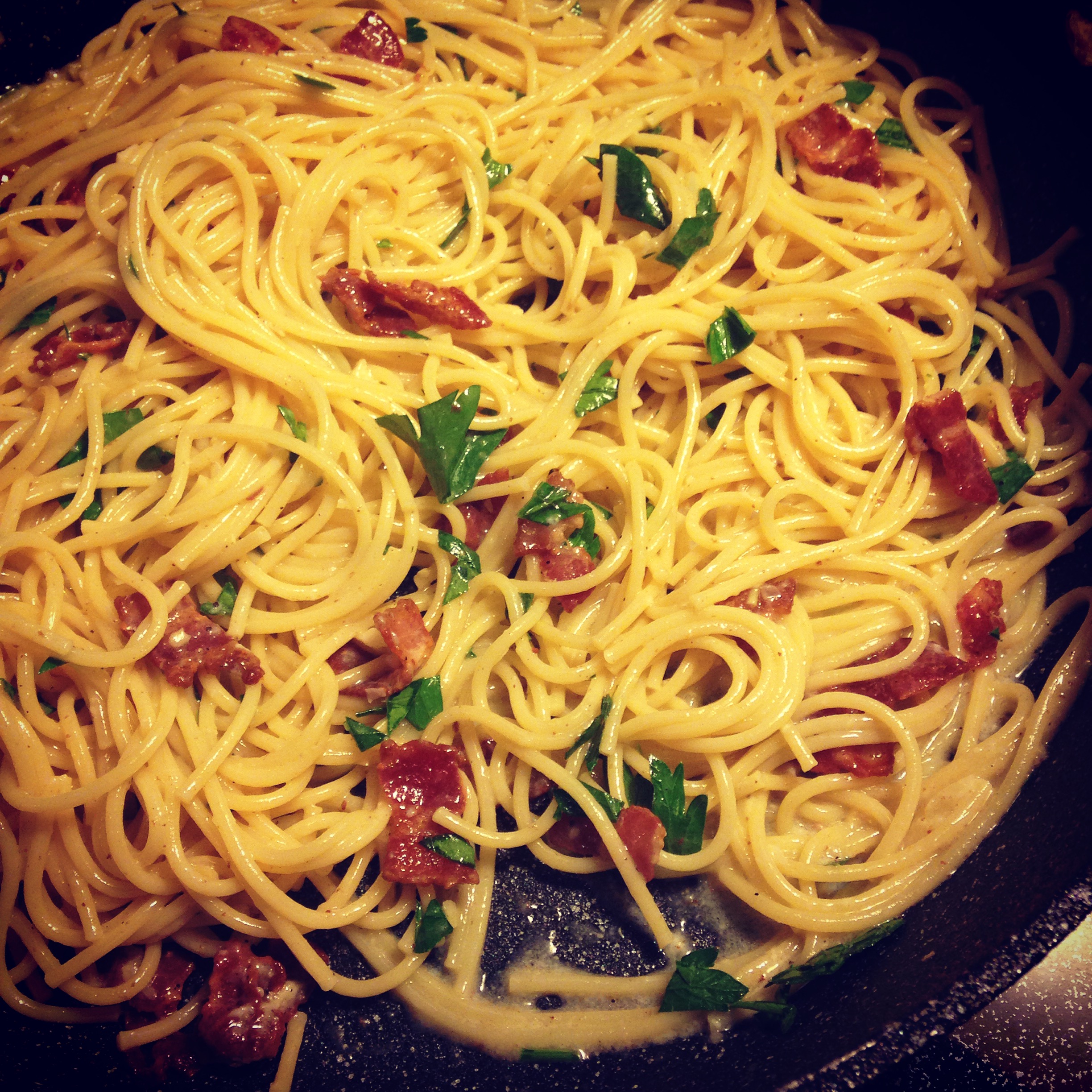 Spaghetti alla Carbonara is the bacon and eggs of Italy. It’s a quick, creamy pasta that makes a comforting weekday or lazy weekend meal that you will want to make again and again.