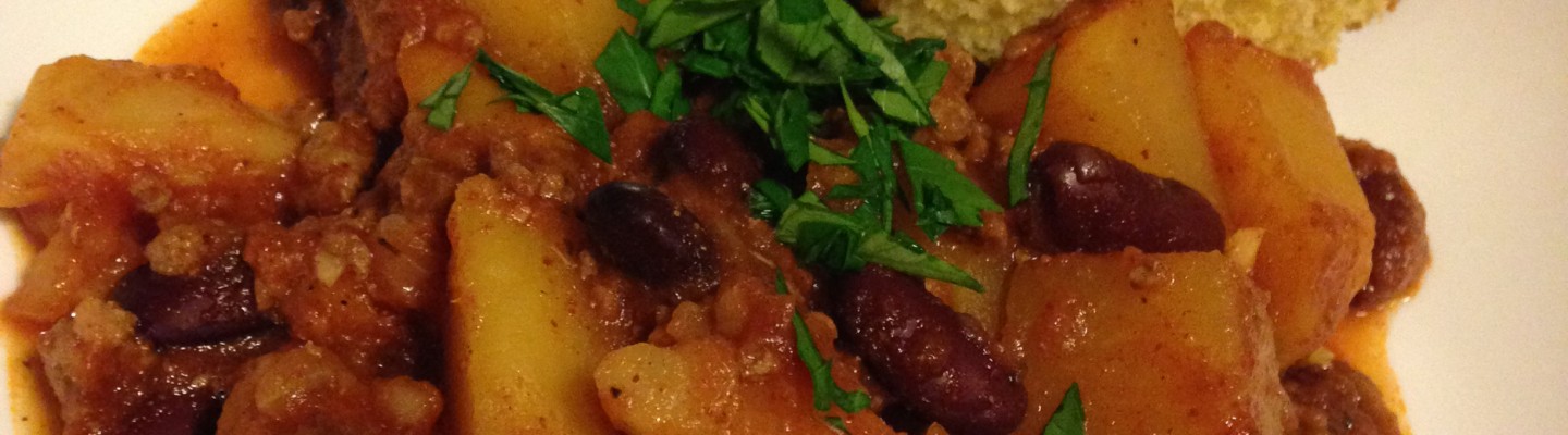 In a large pot over medium-high heat, brown the ground turkey in the olive oil. Add the onion and garlic and cook until softened a bit. Add the rest of the ingredients, except the kidney beans and garnish, and stir to combine. Bring the mixture to a boil, reduce heat and simmer partially covered for 1 hour (stirring occasionally). Add the kidney beans, partially cover and simmer for another 30 minutes (stirring occasionally). Add salt to taste. Serve over rice or with a side of fresh cornbread if you like with a bit of chopped parsley or green onion to garnish.